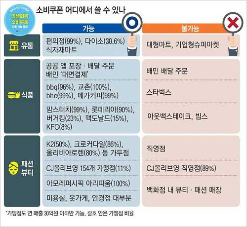가맹점도 연 매출 30억원 이하만 가능한데요. 다만 가맹 비율이 낮은 업체(버거킹 23%, 맥도날드 15%, KFC 8%)는 대부분의 매장에서 사용이 제한된다고 해요.