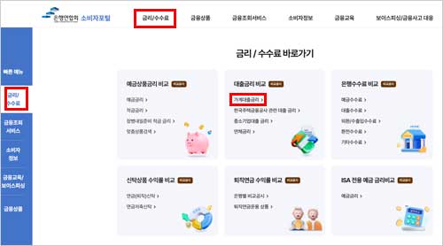 은행별 주택담보대출 금리비교 사이트 은행연합회 소비자포털 홈페이지 서비스 이용방법 및 조회방법 알아보기