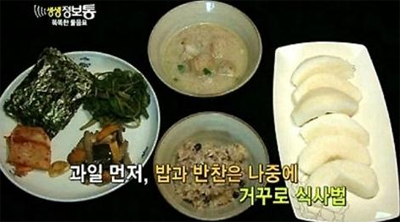 따라서 다이어트를 도와주는 건강한 식습관을 위한 방법으로 거꾸로 식사법이 탄생(?)했다고 하는데요. '거꾸로 식사법'은 말그대로 우리가 평소에 식사를 하고 후식을 먹는 순서를 거꾸로 바꾸면 되는 간단한 방법이라고 해요. 후식을 먼저 먹고 반찬도 나물에서 고기 종류로 먹고 그 다음 제일 마지막으로 밥을 먹으면 되는 방법인데요.