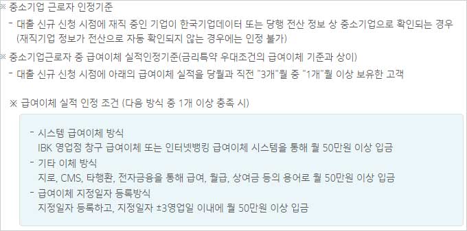 ① 현재 재직중인 근로자로서 재직사실 확인은 공공마이데이터를 통해 건강보험공단 또는 국민연금공단 정보 상 근로자로 확인되는 분, ② 민법상 성년으로 스마트폰으로 대출을 신청하는 분, ③ IBK기업은행 개인 신용평가등급 B+등급 이상 을 모두 충족하는 분이라고 합니다.