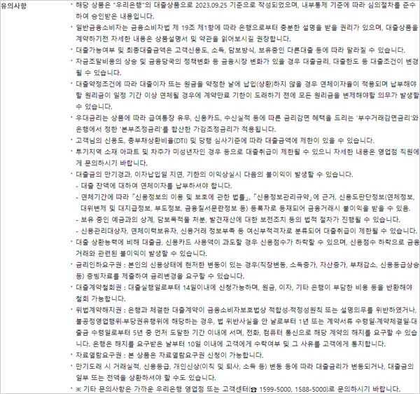 ▶ 대출 유의사항으로는