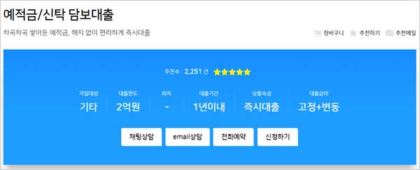- 예금 적금 및 신탁수익권 담보대출은 동일 담보에 대하여 1건의 대출만 취급이 가능하고, 여러 담보를 묶어 1건의 대출로는 취급할 수 없다고 합니다.