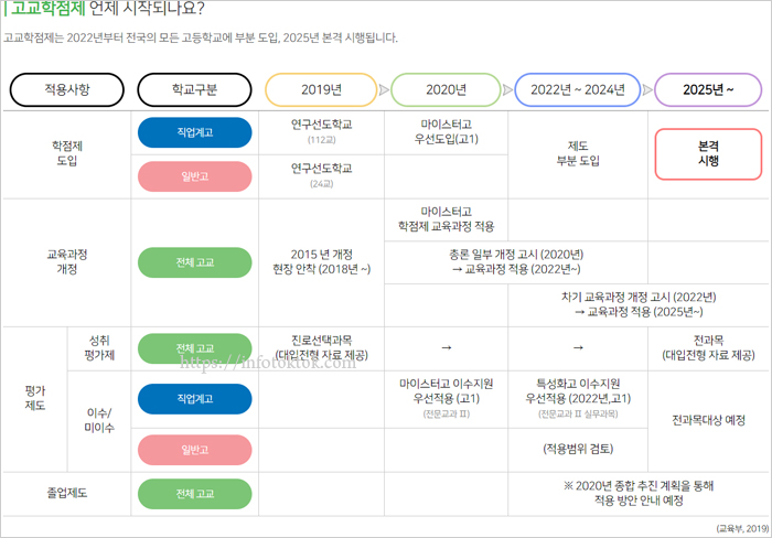 이런 고교학점제가 내년부터 단계적으로 도입된다고 합니다. 내년 1학기에는 특성화고에 고교학점제가 도입되고 일반계고는 부분적으로 도입되구요. 오는 2025년부터는 전국고교로 확대된다고 합니다.